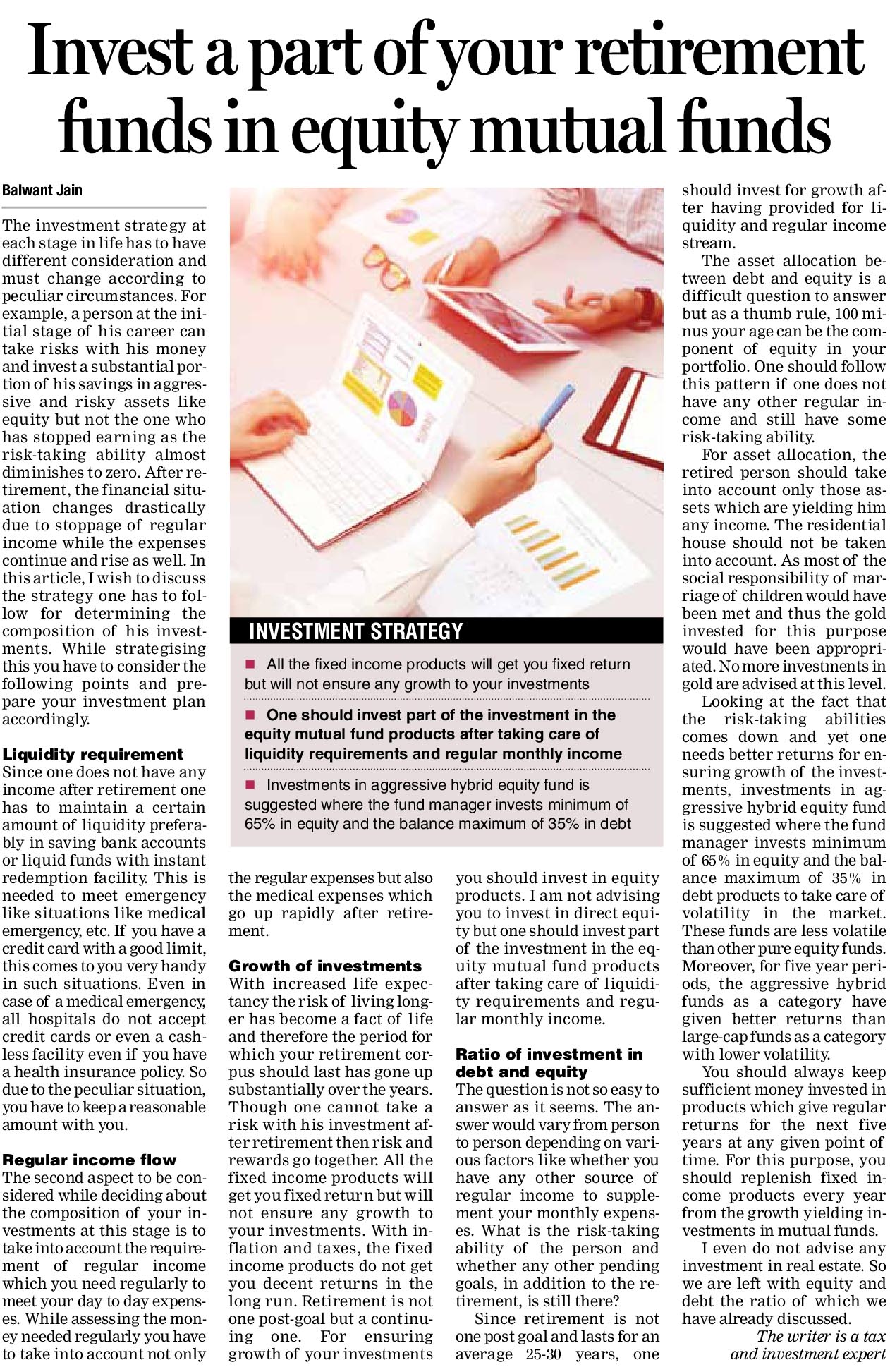 An individual can also invest in a debt of a hybrid mutual funds based on one’s risk appetite. Then for regular income, set up an SWP or systematic withdrawal plan which pays out a specific sum at regular intervals to the investor. If you have risk appetite and ample liquidity, you can also invest a portion in equity funds which will help beat inflation in the long run. Post retirement period need not be a short period. You must prepare for what if you outlive your expected life expectancy.