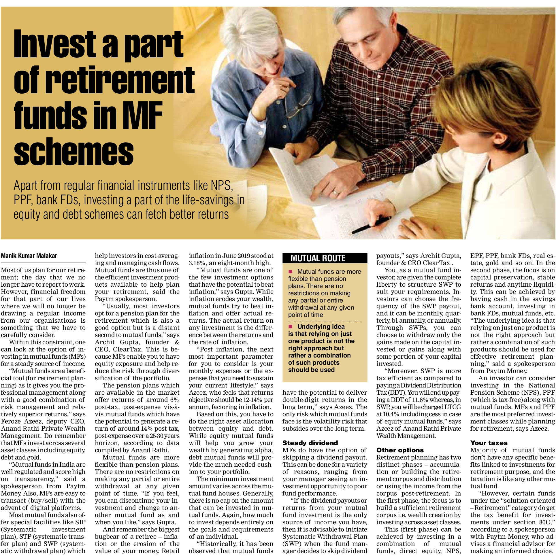Latest articles on Life Insurance, Non-life Insurance, Mutual Funds, Bonds, Small Saving Schemes and Personal Finance to help you make well-informed money decisions.